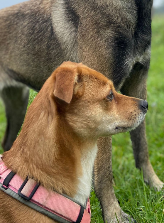 Als Kianga dann bei uns war, zeigte sich sehr schnell, dass sie ein riesiges Thema mit dem alleine bleiben hatte und der Stress deswegen ihre Unsauberkeit auslöste. Ich konnte sie anfangs nicht eine Sekunde alleine lassen - auch nicht innerhalb des Hauses. Das Geräusch einer sich schließenden Tür triggerte sie so heftig, dass ihr sofort Kot und Urin abging. Die ersten Wochen begleitete sie mich also überall hin. Wir lösten ihre Triggerpunkte auf und sie bekam immer mehr Sicherheit. Mittlerweile bleibt sie problemlos alleine.