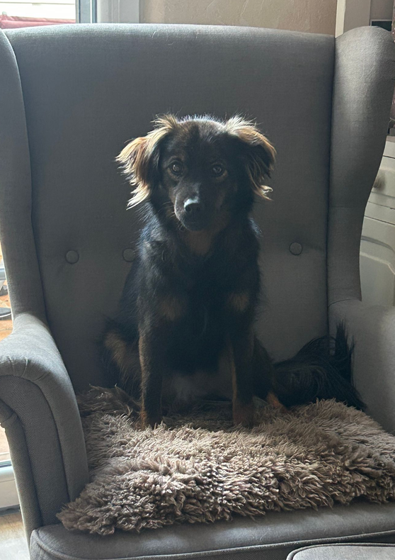 Sie ist eine X-Herder Hündin, 2020 geboren und kam im Mai 2023 zu mir. Sie hatte vorher ein schönes kompetentes Zuhause, allerdings wurde sie dort unsauber und es war nicht ganz klar was die Ursache war. Da dort viele andere Hunde lebten, suchte ihre ehemalige Halterin eine ruhigere Lösung für sie.